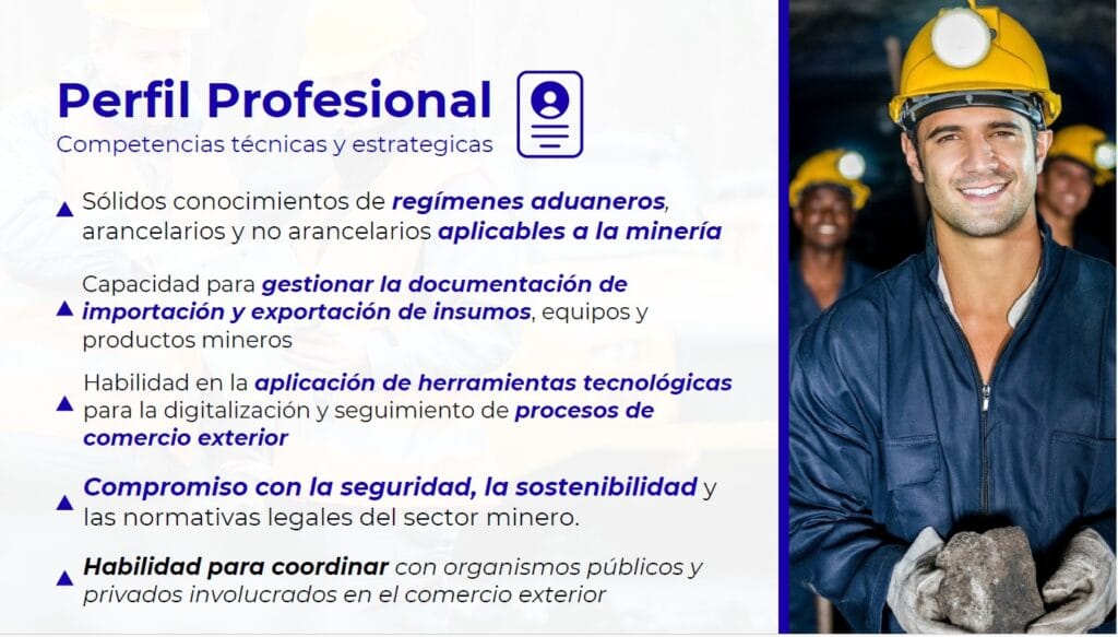 🚀 ¡Una propuesta única para quienes quieren insertarse en el sector minero con competencias reales en comercio exterior y gestión aduanera!